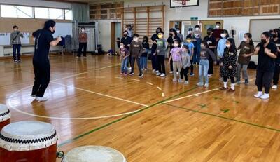 和やかな自己紹介に始まり、遊んで体をほぐし、リズムの唱和や構え方など、目で見る、耳で聴く、体で感じて「心で打つ」太鼓の魅力に触れ、子どもの変容する姿がみられました。