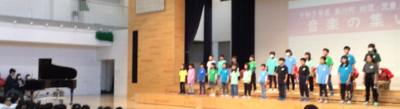 インフルエンザ罹患で参加みあわせなど各校ともに影響がありましたが、参加した幼児センター・一小・二小・三小・東川小の子供たちが元気に器楽演奏や合唱を披露しました。