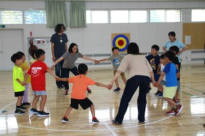 子供たちは、ルールを瞬時に理解して、「心」の玉(ボール)をなげて、キャッチする活動を愉しんでいました。